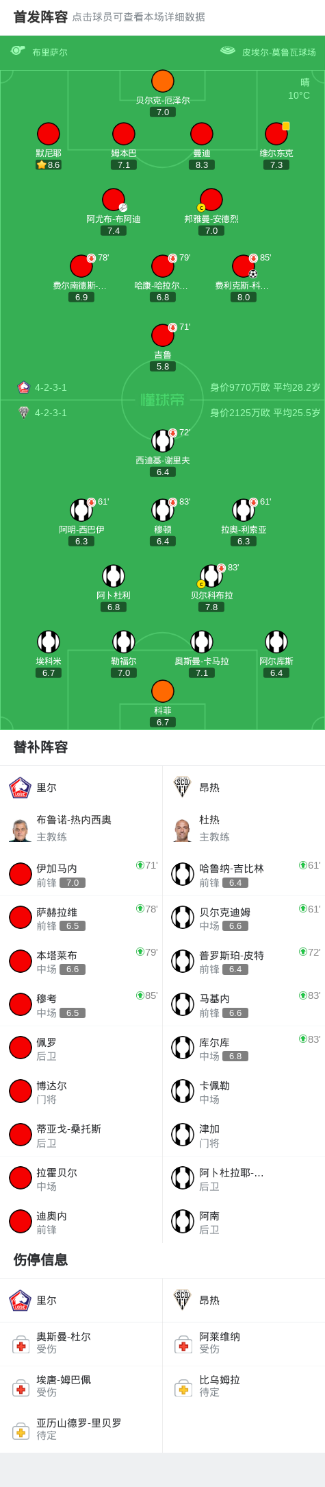 上半場補時第2分鐘,里爾球員阿尤布-布阿迪助攻費利克斯-科雷亞打入一球。