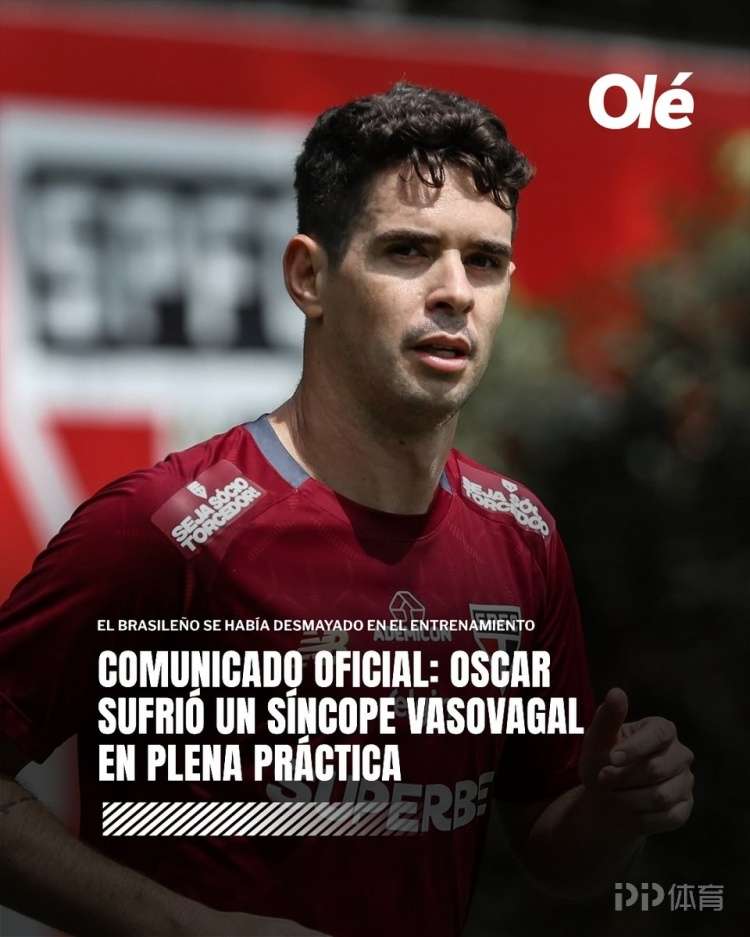 圣保羅俱樂部官方聲明,奧斯卡在訓練中突然暈倒,并被送往阿爾伯特·愛因斯坦醫(yī)院的心臟科。經診斷,奧斯卡所經歷的是血管迷走神經性暈厥(也稱為血管迷走性虛脫)。