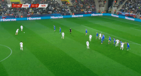 第90+1分鐘,角球開出,博貝塞克破門,斯洛伐克1-0