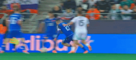 第45分鐘,任意球開到禁區(qū),什克里尼亞爾凌空抽射,皮球稍稍高出橫梁