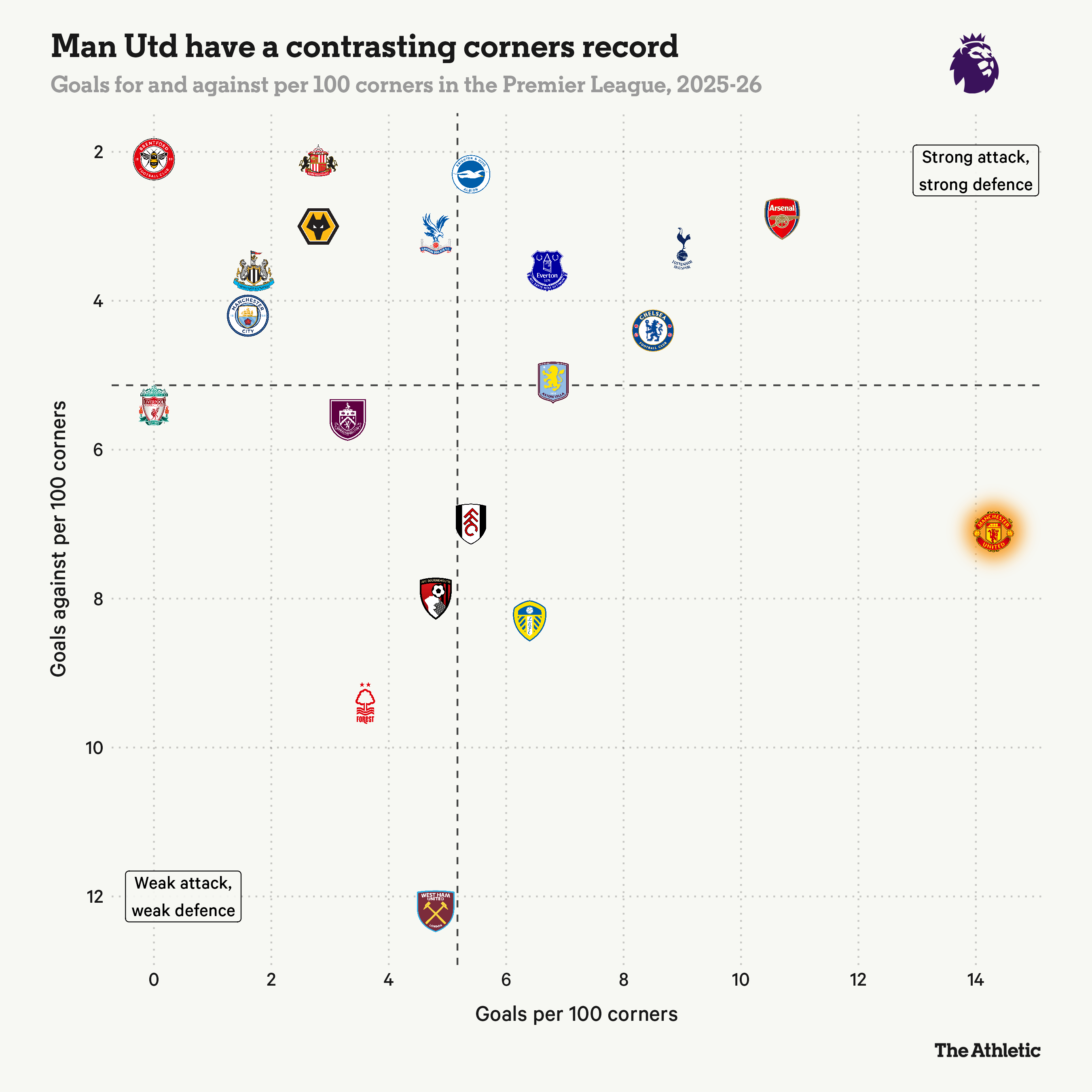 然而,他們的進(jìn)攻角球得分率(每100次角球攻入14.3球)在2025-26賽季的英格蘭頂級(jí)聯(lián)賽中高居榜首。