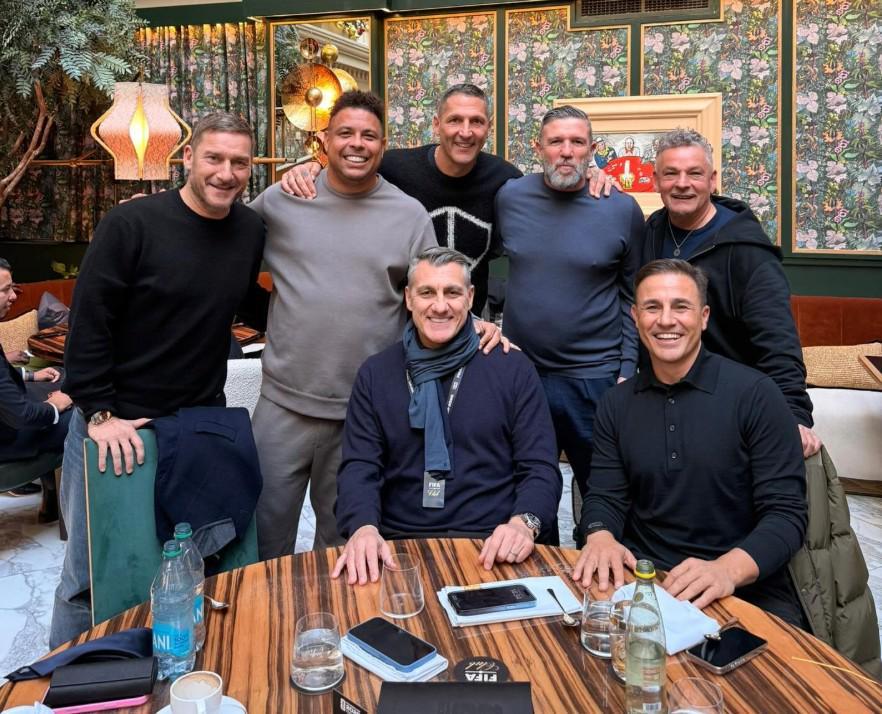 北京時間12月5日,意大利和國際米蘭的傳奇射手維埃里在社交媒體上曬出了自己與一眾名宿的合影,其中包括了羅納爾多、羅伯特-巴喬、托蒂以及卡納瓦羅。